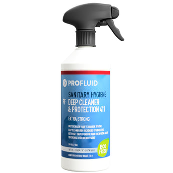 Voor regelmatige, duurzame dieptereiniging en bescherming in 1 handeling van alle sanitaire toepassingen zoals wastafels, kranen, tegels, toilet, doucheruimte, deurknoppen e.d. Verwijdert > 99% van alle micro-organismen en vuil, micellaire huidvriendelijke werking, product op waterbasis. Te gebruiken in combinatie met de PF Protector 412. Geeft een blijvend verhoogd hygiëne niveau van uw sanitair in combinatie met een mooie uitstraling. Het nieuwe schoon. Brengt in dezelfde handeling een gladde beschermlaag aan voor anti-vuilhechting en easy cleaning. Toepasbaar op alle materialen, glad, mat, natuurlijk en kunststof. Het product is 100% vriendelijk voor huid, milieu en materialen.